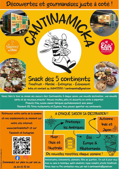 La CANTINAMICKA vient dans votre commune pour vous régaler ! Cuisine du monde, recette originale et varié inspiré des traditions et de la street food des 5 continents.