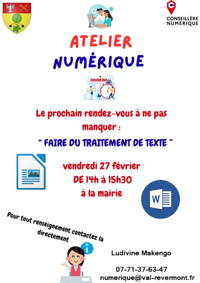 Le prochain atelier numérique aura comme sujet "FAIRE DU TRAITEMENT DE TEXTE"